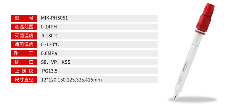 MIK-PH5050高溫滅菌玻璃電極集精度高、易用于一體,采用耐高溫型凝膠和耐高溫型固體電介質(zhì)雙液接傳感器,維護(hù)量低,可與進(jìn)口電極互換,適合要求嚴(yán)格的在線pH測量,響應(yīng)快,穩(wěn)定性好。廣泛應(yīng)用于醫(yī)藥、顏料、涂料、紙漿造紙、中間體、化肥、淀粉、污水處理、環(huán)保、電鍍廢水處理等行業(yè)。