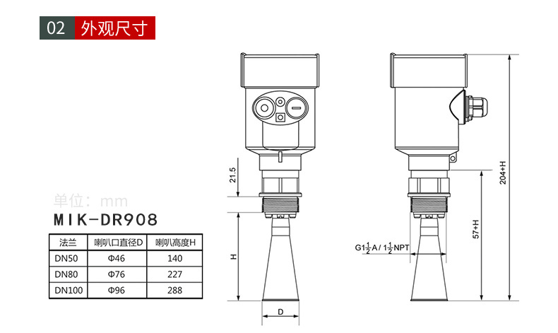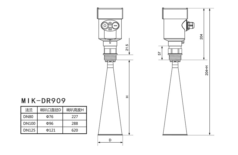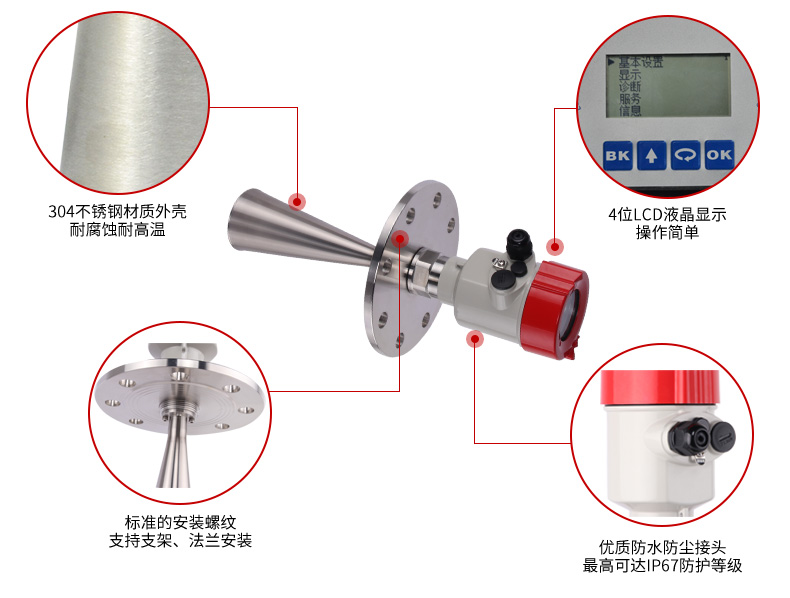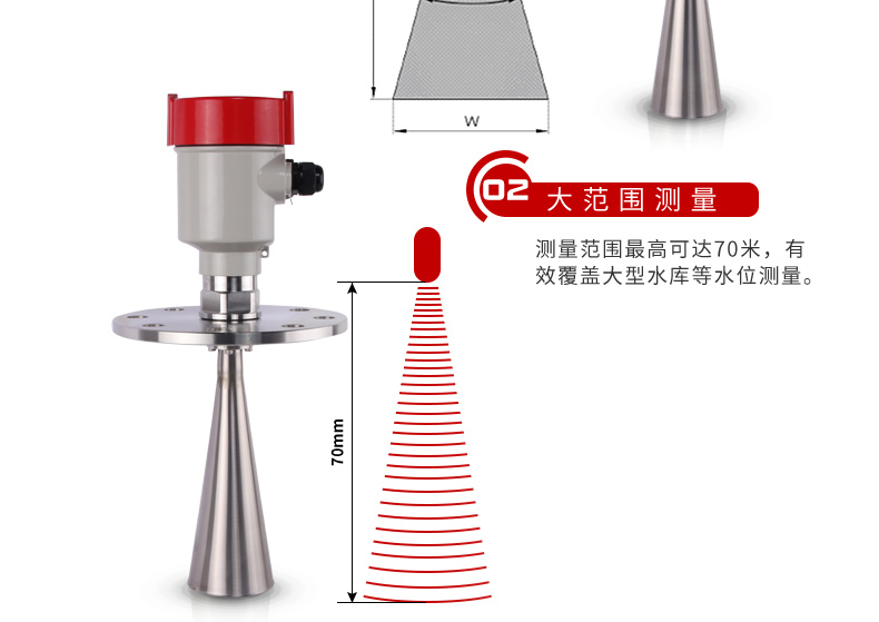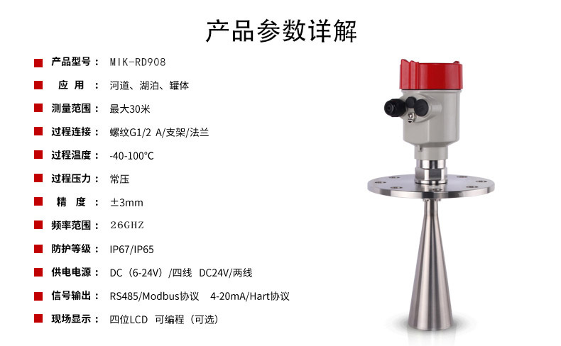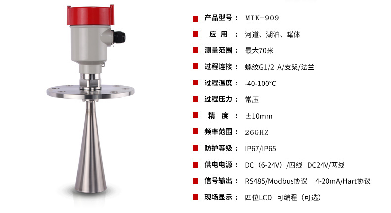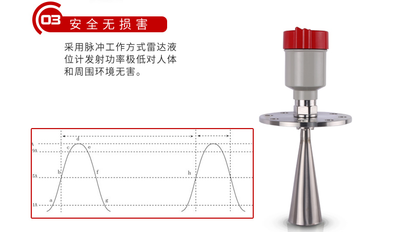 MIK-RD908/909雷達(dá)液位計(jì)天線發(fā)射極窄的微波脈沖,這個(gè)脈沖以光速在空間傳播,遇到被測介質(zhì)表面,其部分能量被反射回來,被同一天線接收。發(fā)射脈沖與接收脈沖的時(shí)間間隔與天線到被測介質(zhì)表面的距離成正比。由于電磁波的傳播速度極高,發(fā)射脈沖與接收脈沖的時(shí)間間隔很小(納秒量級)很難確認(rèn),MIK系列908雷達(dá)液位計(jì)采用一種特殊的解調(diào)技術(shù),可以準(zhǔn)確識別發(fā)射脈沖與接收脈沖的時(shí)間間隔,從而進(jìn)一步計(jì)算出天線到被測介質(zhì)表面的距離。