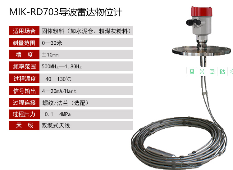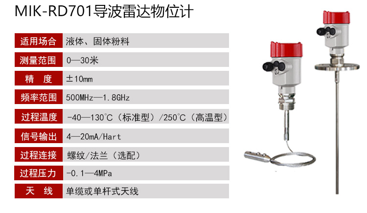 MIK-RD70雷達物位計天線發射極窄的微波脈沖,這個脈沖以光速在空間傳播,遇到被測介質表面,其部分能量被反射回來,被同一天線接收。發射脈神與接收脈沖的時間間隔與天線到被測介質表面的距離成正比。由于電磁波的傳播速度極高,發射脈神與接收脈神的時間間隔很小(納秒量級)很難確認,MIK—RD70導波雷達物位計采用種特殊的解調技術,可以準確識別發射脈神與接收脈神的時間間隔,從而進一步計算出天線到被測質表面的距離。