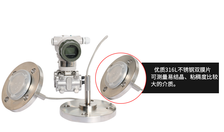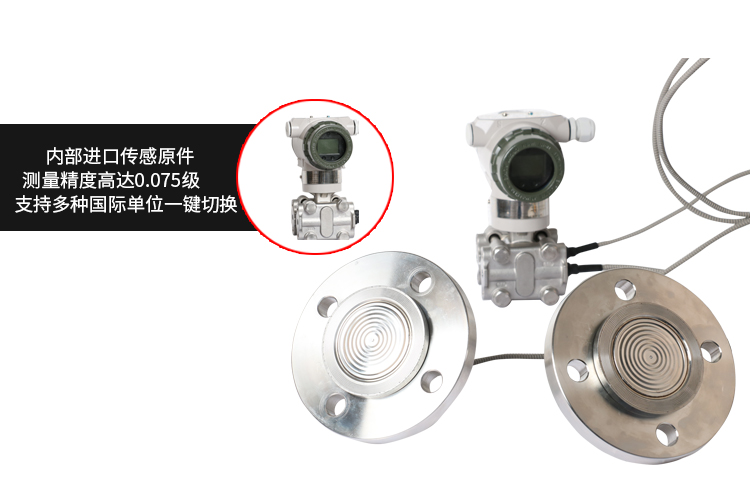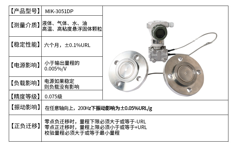 美控MIK-3051DP雙法蘭液位變送器產(chǎn)品利用差動(dòng)電容檢測(cè)原理,當(dāng)兩側(cè)壓力不一致時(shí),致使容室中測(cè)量膜片產(chǎn)生位移,其位移量與壓力差成正比,通過電路處理將電容變化量轉(zhuǎn)換成4~20mA的二線制電流信號(hào)輸送給二次儀表顯示液位值,同時(shí)也可以表頭顯示液位值。該液位變送器具有堅(jiān)固抗振、量程、零點(diǎn)和阻尼現(xiàn)場(chǎng)連續(xù)可調(diào)。