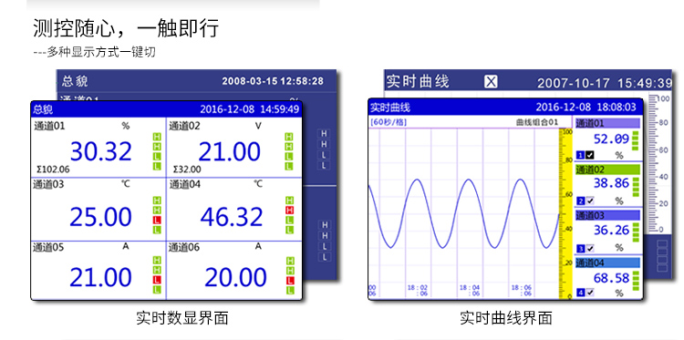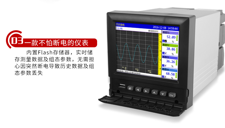 RX4000D系列藍屏無紙記錄儀可以采集、顯示與記錄現場變送器的信號。可以通過USB接口轉存,通過計算機中事先安裝好的數據分析軟件,監測和評價歷史數據和曲線。采用進口的高速、高性能ARM微處理器,5.6英寸LED背光的液晶顯示屏和觸摸式的按鍵,主要應用于冶金、石油,化工、建材,造紙,食品、醫藥、熱處理等各種工業現場,在杭州娃哈哈,大慶油田,秦山核電站等都得到了應用。