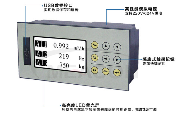 2通道萬能信號輸入,橫式,1路繼電器輸出,RS232通訊,帶USB接口,DC24V供電