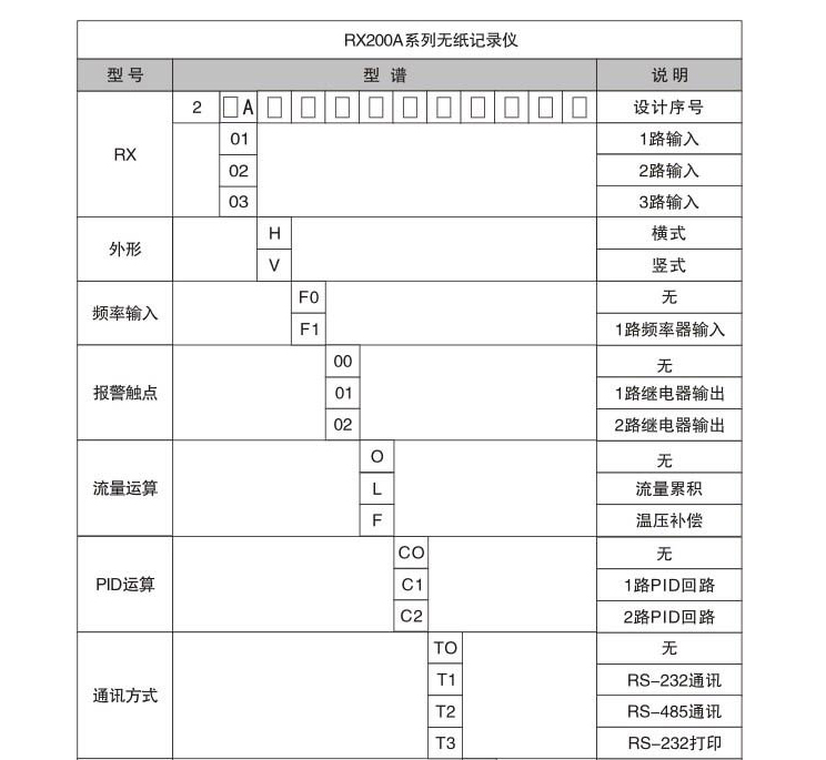 例如:RX202A-H-FO-01-C0-T1-A0-P1-1-D 表示