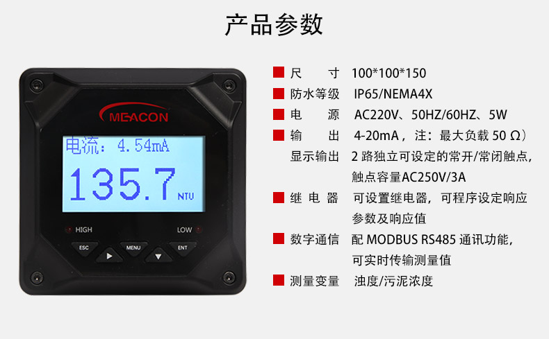 MIK-PTU100在線濁度分析儀內置微處理器,適用于于污水廠、自來水廠、水站、地表水、工業等領域濁度監測,例如:污水廠沉淀池、曝氣池、氧化溝、提升泵站的濁度測量。本濁度/污泥濃度控制器是一款智能在線化學分析儀器,廣泛應用于火電、化工化肥、冶金、環保、制藥、生化、食品和自來水等各個行業。